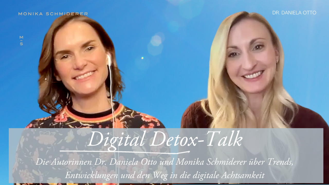 In diesem spannenden Gespräch zwischen den Autorinnen Dr. Daniela Otto (»Digital Detox. Wie Sie entspannt mit Handy & Co leben«, 2016 und »Digital Detox für die Seele«, 2021) und Monika Schmiderer (»Switch Off und hol dir dein Leben zurück«, 2017 und »Finde Klarheit«, 2021) erfährst du welche Entwicklung dieses wichtige Thema Digital Detox aktuell nimmt, welche Bereiche besonders zu beachten sind, und wo die Trends liegen.